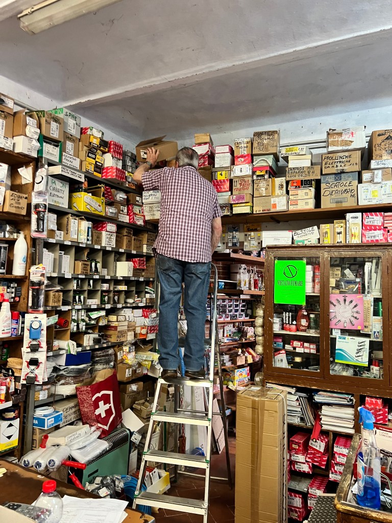 He was starting to think about closing for lunch when I came in looking for a US to EU plug adapter. I described the item to him rather poorly in three different languages, but somehow he knew exactly what I wanted after ten or so muddled words. He grabbed his ladder and pulled it down from a box on the top row. He put it there twelve years ago. I paid and left.